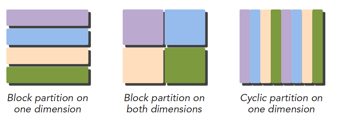 - 块划分,把一整块数据切成小块,每个小块随机的划分给一个线程,每个块的执行顺序随机(关于线程的概念可以去看《深入理解计算机系统》)
