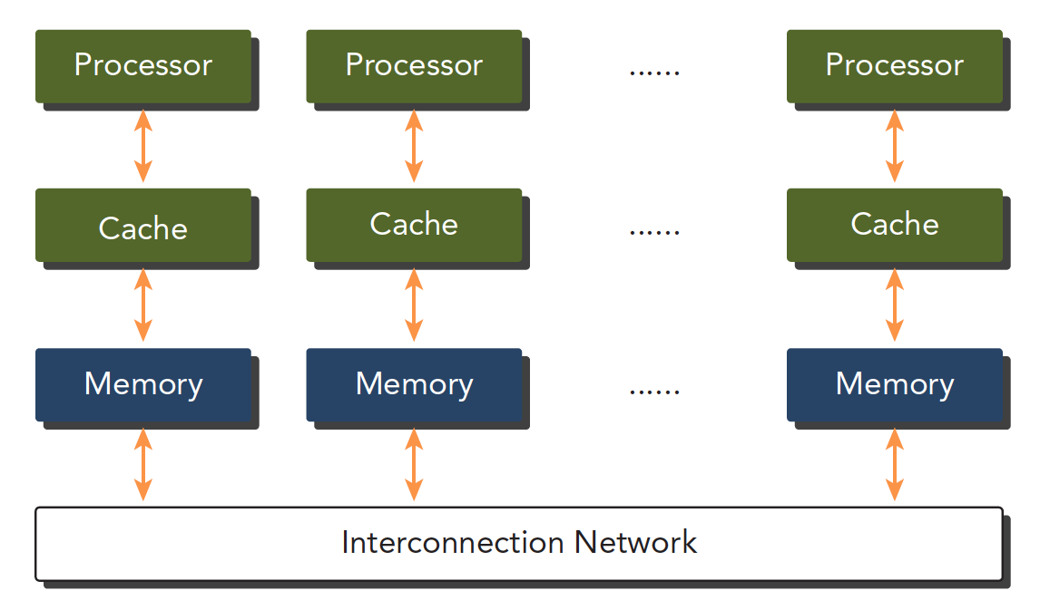 多个处理器可以分多片处理器,和单片多核(众核many-core),也就是有些主板上挂了好多片处理器,也有的是一个主板上就一个处理器,但是这个处理器里面有几百个核。