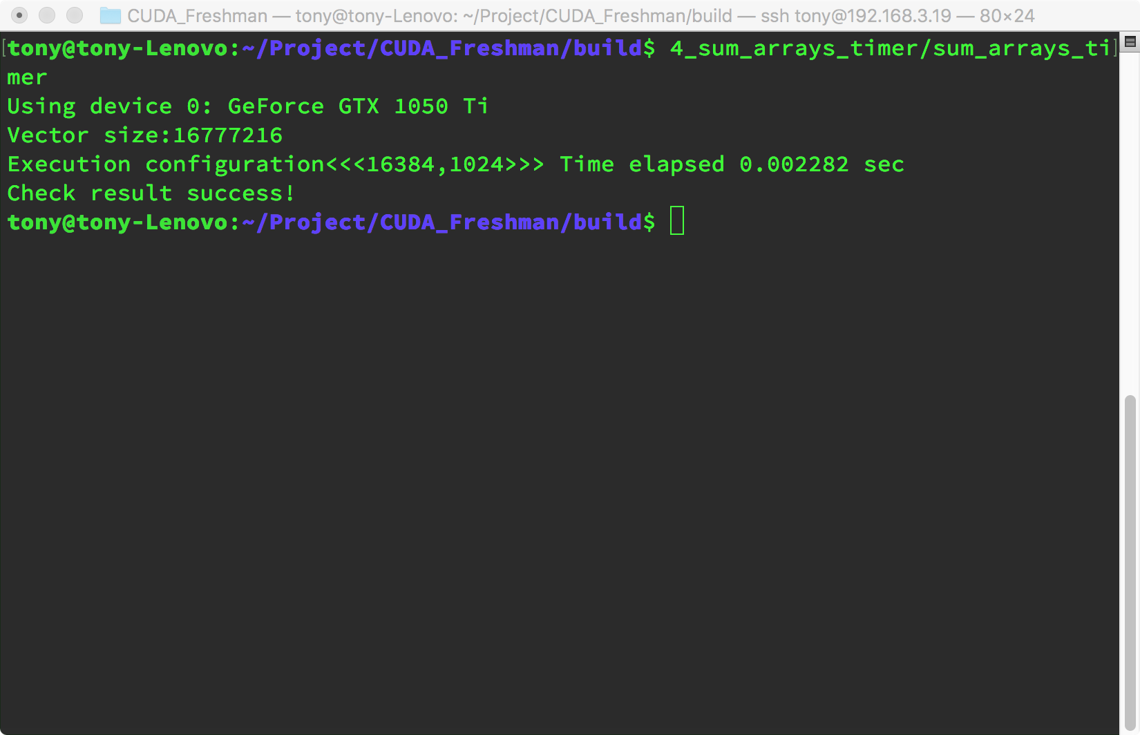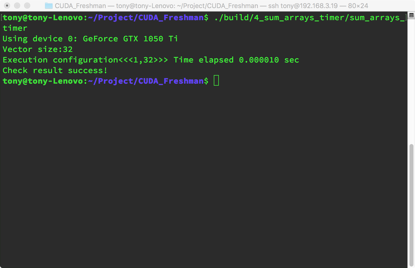 我把代码部分贴出来,完整的访问代码库:https://github.com/Tony-Tan/CUDA_Freshman