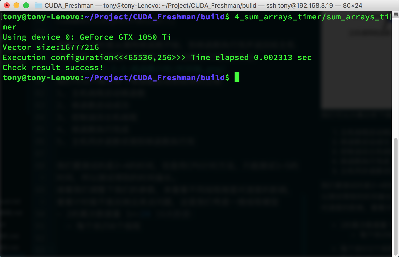 主要分析计时这段,首先iStart是cpuSecond返回一个秒数,接着执行核函数,核函数开始执行后马上返回主机线程,所以我们必须要加一个同步函数等待核函数执行完毕,如果不加这个同步函数,那么测试的时间是从调用核函数,到核函数返回给主机线程的时间段,而不是核函数的执行时间,加上了1