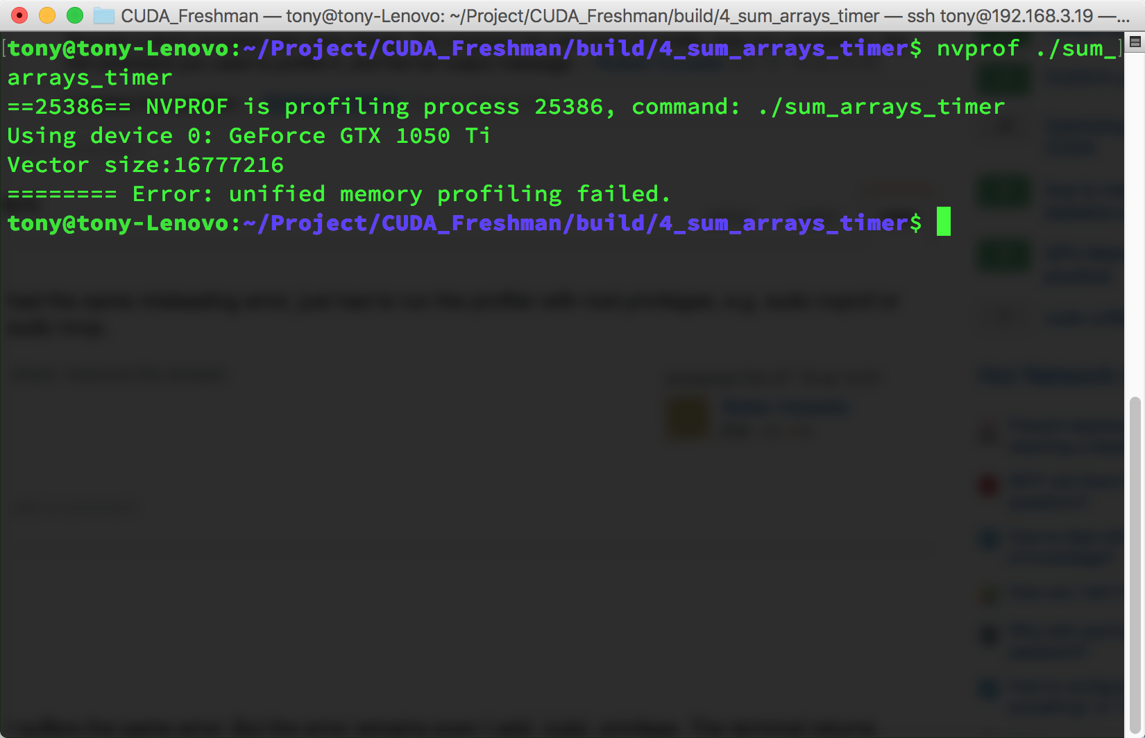 昨天晚上开始折腾ubuntu,上一篇用腾讯云搭建服务器来调试CUDA,现在有机器了,所以装个ubuntu准备调试cuda,但是出现了下面的纠结问题,搞了将近五个多小时,才解决,首先我的笔记本是联想R720 1050Ti的显卡,安装ubuntu 16.04 发现源中的驱动安装好后,安装CUDA 9.1 local版本出现问题,没办法安装成功,以为是驱动问题,安装新的驱动也不行,于是想起来之前用的是17.04,打开镜像网站发现17.04已经不再支持了,找了old版本中,找到下载安装,发现没有源可以用,放弃,安装17.10,开机就出错,于是又退回16.04,安装自带的驱动,安装了cuda 9.0 run版,成功了,安装cmake,ssh-server,于是我们成功了: