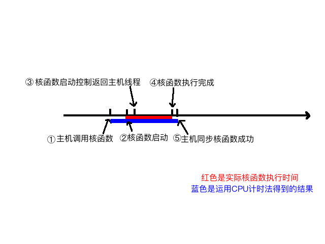 函数后,计时是从调用核函数开始,到核函数执行完并返回给主机的时间段,下面图大致描述了执行过程的不同时间节点: