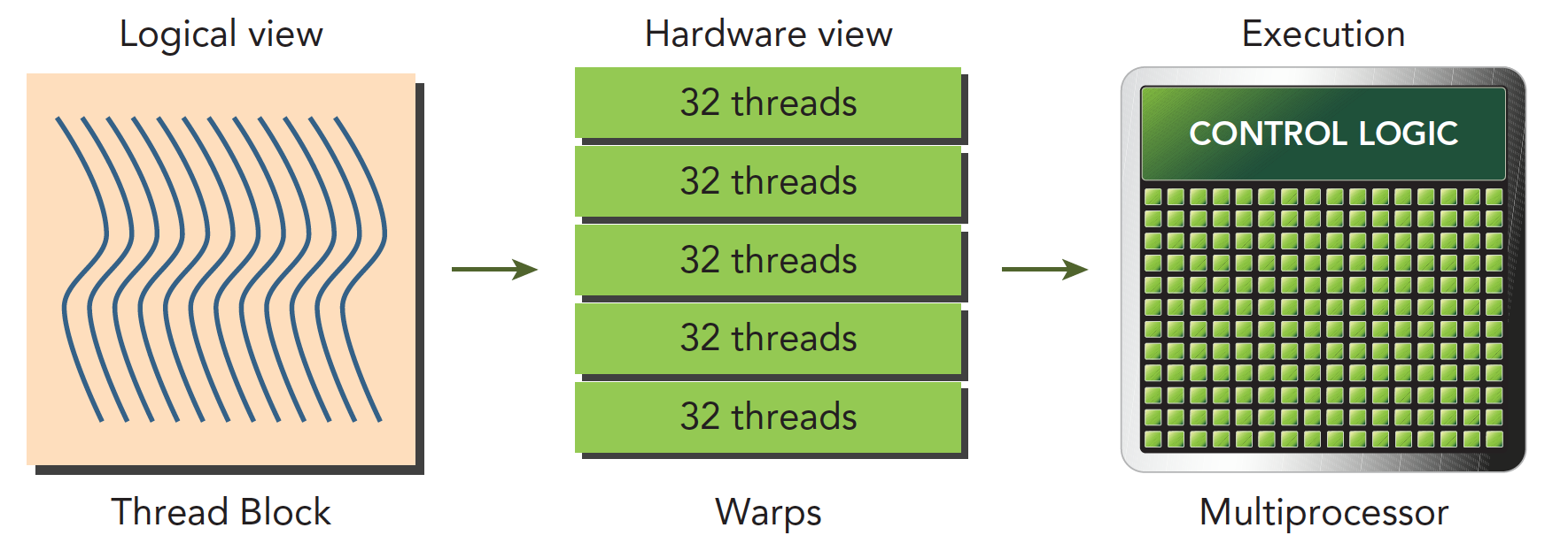 从外表来看,CUDA执行所有的线程,并行的,没有先后次序的,但实际上硬件资源是有限的,不可能同时执行百万个线程,所以从硬件角度来看,物理层面上执行的也只是线程的一部分,而每次执行的这一部分,就是我们前面提到的线程束。