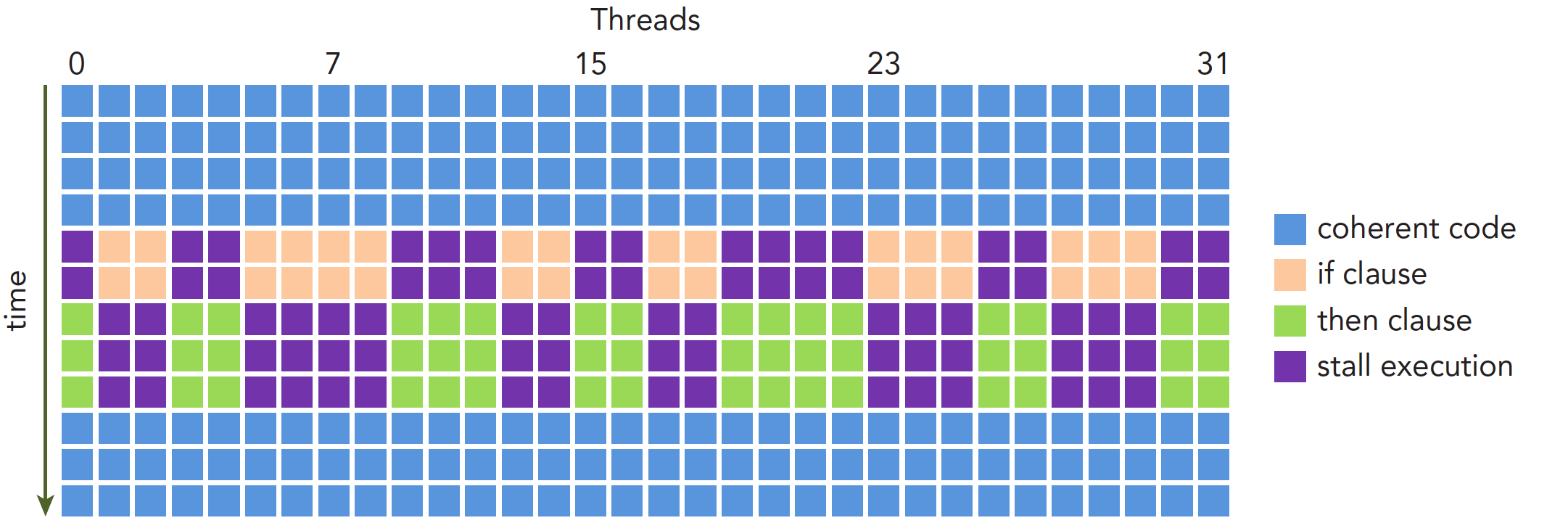 线程束内没有分支,效率较高。