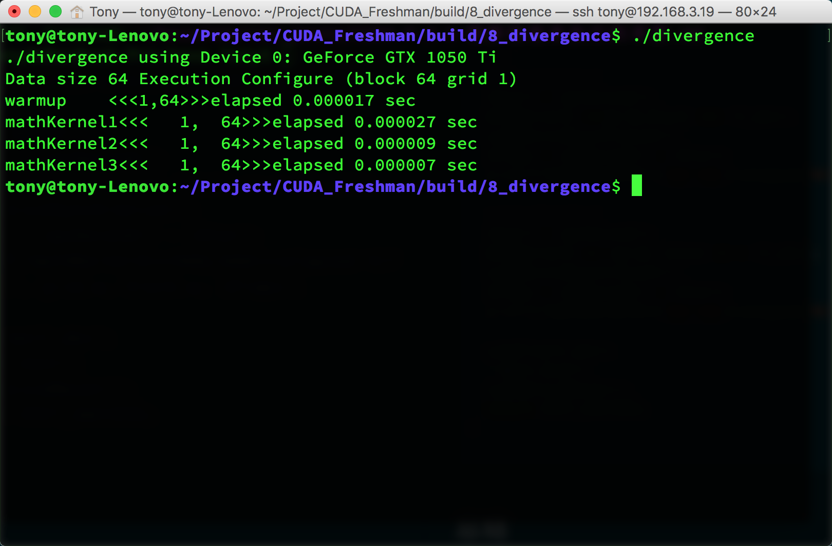 完整代码:https://github.com/Tony-Tan/CUDA_Freshman