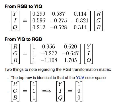 Keywords: 色彩空间,YIQ,YUV,YCbCr