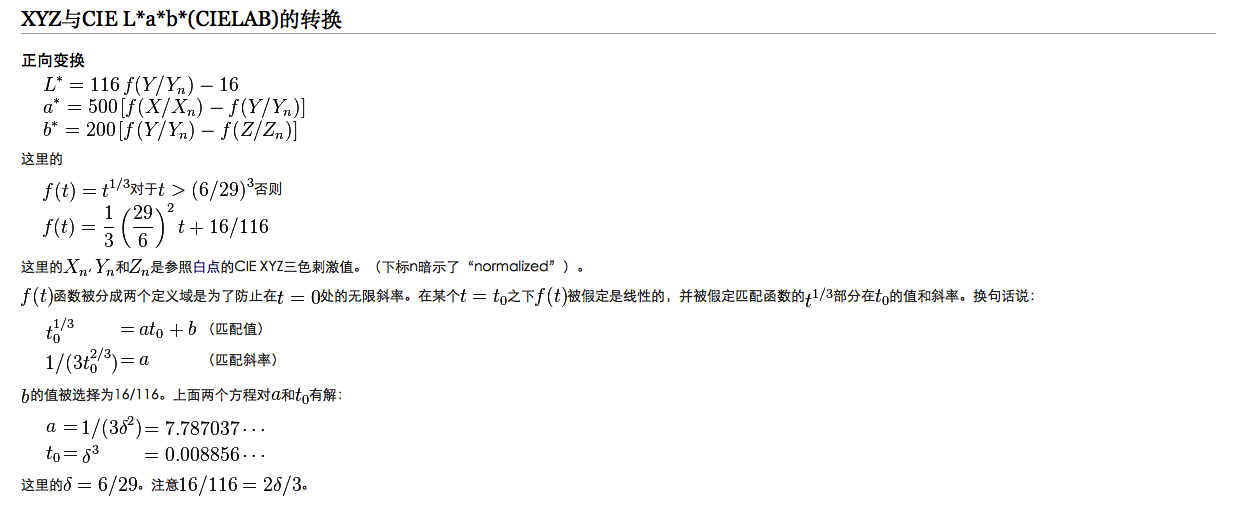 得到CIELAB的办法是从XYZ空间进行: