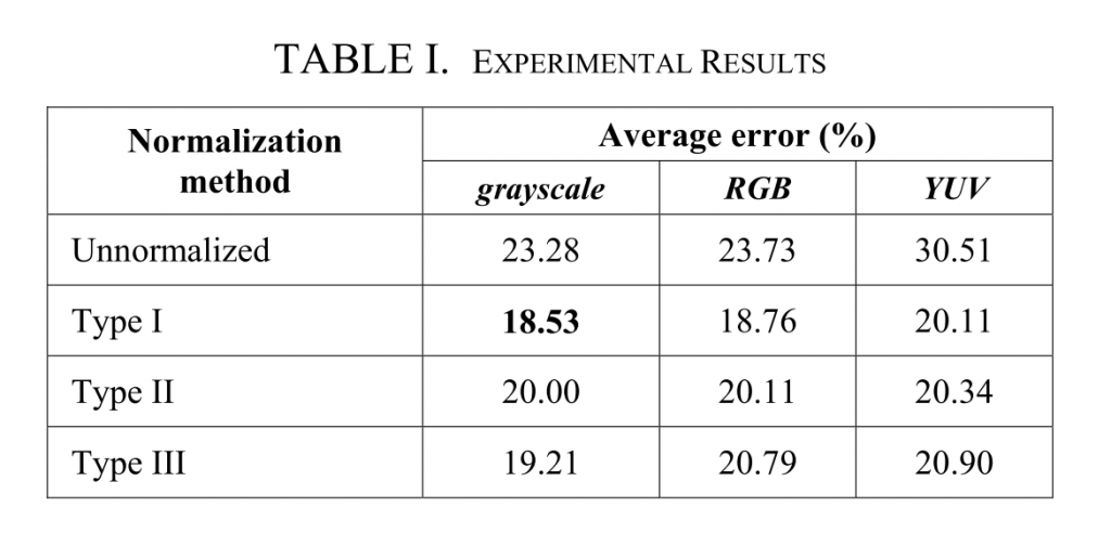 文章对行人进行性别分类,网络结构采用最古老的LeNet作为模板,对训练样本进行不同的处理产生了不同的结果,比较如下: