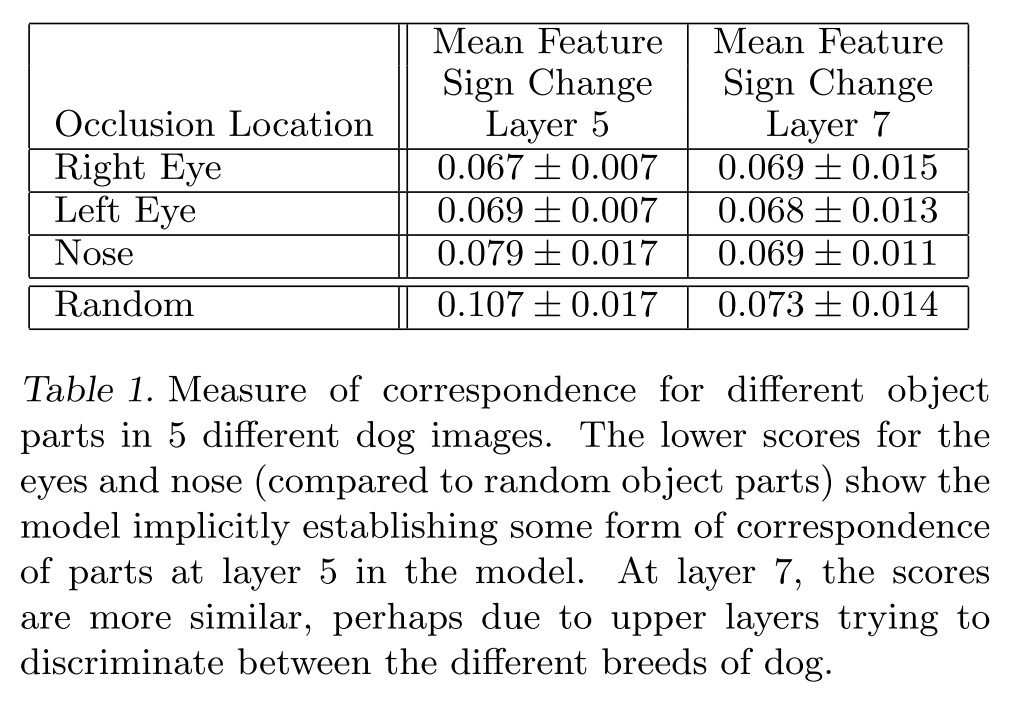评论:不同特征的独立性验证,如果你有鼻子眼睛嘴的脸部特征,遮住鼻子对最后的特征向量影响不大,说明他们之间的相关性比较强,类似于一张图如果有鼻子,基本也有眼睛,所以你遮住眼睛也会得到差不多的特征向量。