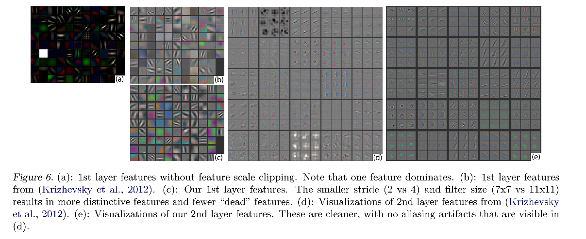 Additionally, the 2nd layer visualization shows aliasing artifacts caused by the large stride 4 used in the 1st layer convolutions.