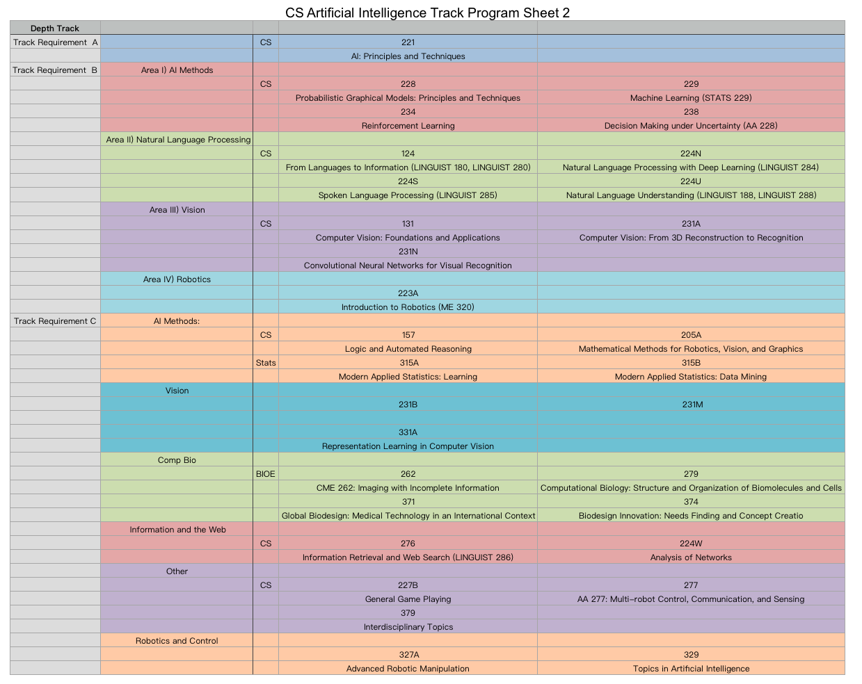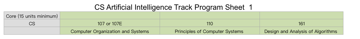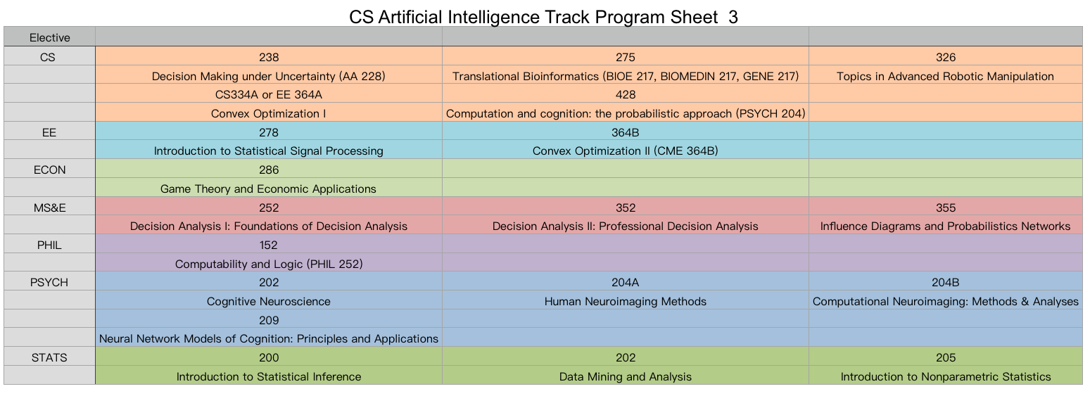 所以今天我就找了一下Stanford大学的AI专业的选课表(我自己翻译的,我觉得就是个这东西)或者说是课程安排。我只找了一部分比较重要的,完整的可以参考: