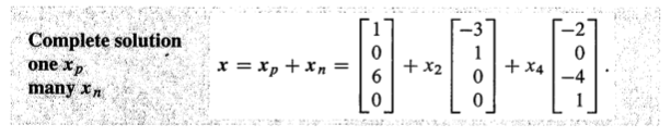 自此,Ax=b 的所有解以及对应的情况都已经搞定了,但是为啥complete solution是$x_p+x_n$呢?这就是个悬案了,后面一定给出答案,现在就暂时记住就好了(回归课堂教育,先记住,就没有然后了)。