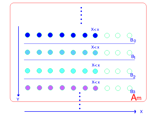 我们可以确定:${X\leq x}=\bigcup^{\infty}_{n=-0}B_n$ ,并且 $A_m={X\leq x \text{ and } Y\leq m} \text{ for } m=1,2,\dots$ 这样我们有 $Pr(A_m)=F(x,m) \text{ for each } m$