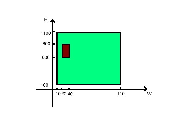 还是水费和电费的例子,我们之前解决是用几何的方法解决的,现在我们用分析的方式解决,回一下题干,“我们有一家工厂,每个月用水是在 $[10,110]$ 吨,用电在 $[100,1100]$ 千瓦时,并且是完全随机的均匀的,那么我们可以计算用水在 $[20,40]$ 吨,用电在 $[600,800]$ 千瓦时的概率是多少?”