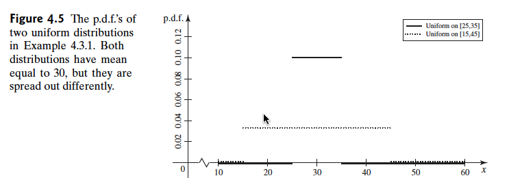 在$[25,35]$ 的均匀分布