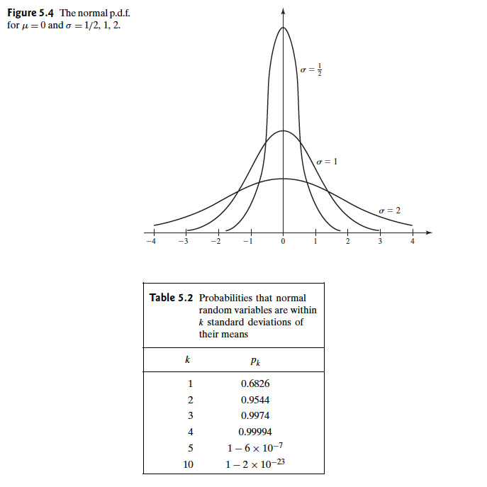 表格中k表示几个标准偏移,也就是k的具体值,可以看出,当$k=3$ 的时候,正态分布内 $Pr(\mu-3\sigma,\mu+3\sigma)>0.99$ 了而且我记得我大学书上有个 $3-\sigma$ 原则,好像是当检测结果满足这个要求的时候就算合格了,这个具体的我们在数理统计部分再说,我们要知道的是正态分布的形状,和偏移性质。