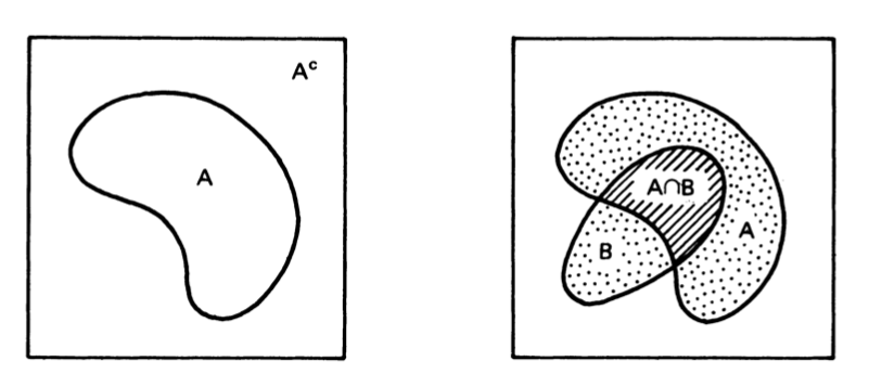 集合 $A$ 的Complement被写成 $A^c$ 表示: