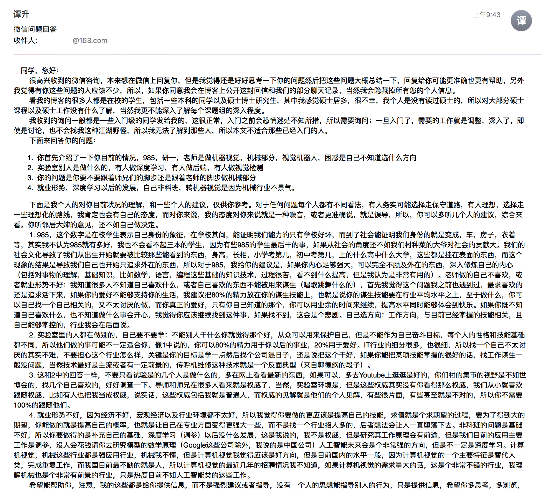 收到一位读者的来信,字里行间都看到了当年的自己,中间有一些问题觉得很多人可能都有,所以在他同意的情况下,我把邮件部分贴出来,希望能帮助更多的人。